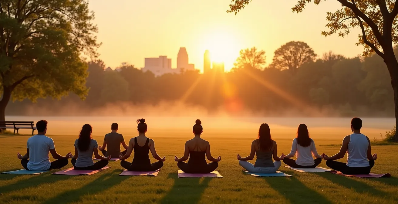 L’été à Montréal, l’image est idyllique : des dizaines de yogis déroulent leur tapis sur l’herbe fraîche d’un parc, guidés par une voix apaisante, sous le soleil doux du matin. C’est une invitation à se reconnecter à la nature et à la communauté, souvent sans débourser un sou. Pour vous, yogi débutant ou au budget serré, cette perspective est une véritable bouffée d’air frais. Vous imaginez déjà la posture du guerrier avec le Mont-Royal en toile de fond, un moment de grâce et de tranquillité. Mais la réalité de la pratique en plein air en milieu urbain peut parfois s’éloigner de la carte postale. Entre un sol irrégulier qui défie votre équilibre, le bruit des vélos sur la piste cyclable voisine et le regard curieux des passants, la sérénité peut sembler difficile à atteindre.