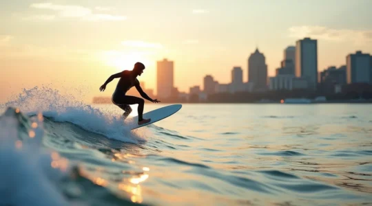 Un phénomène unique attire les surfeurs avertis : la vague stationnaire d’Habitat 67. Créée par le courant et la configuration du fond rocheux, cette vague permanente permet de surfer en eau douce au cœur de la ville. L’expérience demande toutefois un équipement spécialisé pour l’eau froide (combinaison néoprène 4/3 minimum) et le respect d’une étiquette locale stricte, la vague accueillant rarement plus de 4-5 surfeurs simultanément.